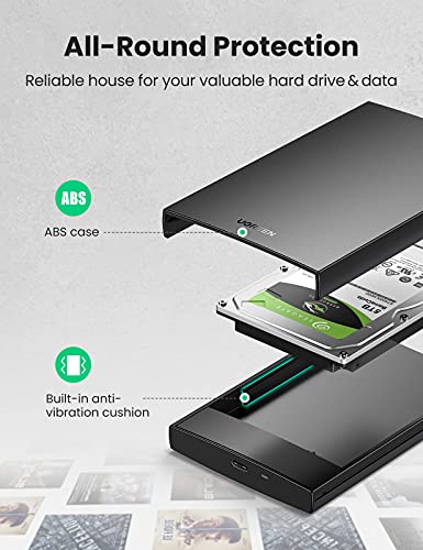 Specification: UGREEN USB 3.1 Harde Schijf Behuizing voor 9,5mm/7mm 2,5 Inch SSD/HDD USB C 3.1 Gen 2 naar SATA III tot 6Gbps UASP met…