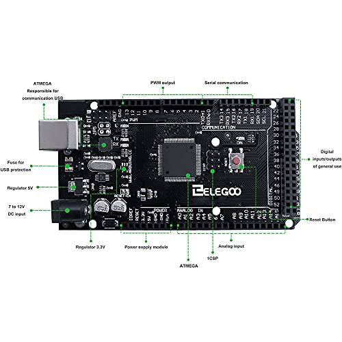 Specification: ELEGOO Mega R3 Microcontroller ATmega 2560 met USB-kabel Compatibel met Arduino IDE
