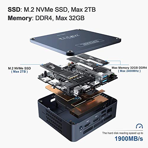 Ultrasnelle mini-pc met Windows 10: Intel Core i5-8279U processor Dual-Core van de 8e Generatie met een basiswerkfrequentie van 2,4 GHz/s en tot 4,1 GHz in de burst-modus. Windows 10 Pro 64 bit al vooraf geïnstalleerd. NVMe M.2 PCIe Gen2 SSD met lees-/schrijfsnelheden tot 10 Gb/s. Maak kennis met uw streven naar alle werksnelheden.