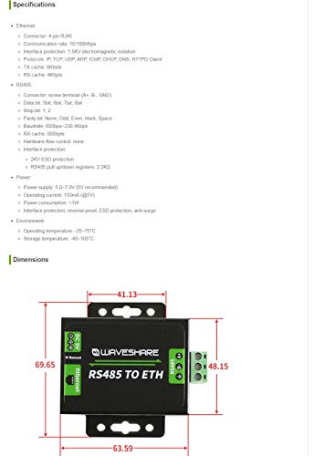 Specification: Waveshare RS485 to Ethernet Converter M0 Series 32-bit ARM Processor Supports DNS Domain Name Resolution Customized…