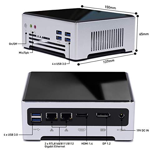 【Besturingssysteem en CPU en rijke I / O】 Nieuw ontworpen mini-pc waarop Windows 10 Pro 64Bit is voorgeïnstalleerd voor het inpakken. Elk kantoorwerk of multitasking kan soepel en snel verlopen met de mini-desktop pc Intel Core i7-7820HK-processor, 8M cache, 4 cores 8 threads, basisfrequentie 2,90 GHz turbofrequentie 3,90 GHz). Ontworpen met 6 x USB 3.0, 2 x Gigabit RJ45 Lan-poort, 1x DP + 1 x HDMI-poort. Maak kennis met uw streven naar alle werksnelheden.