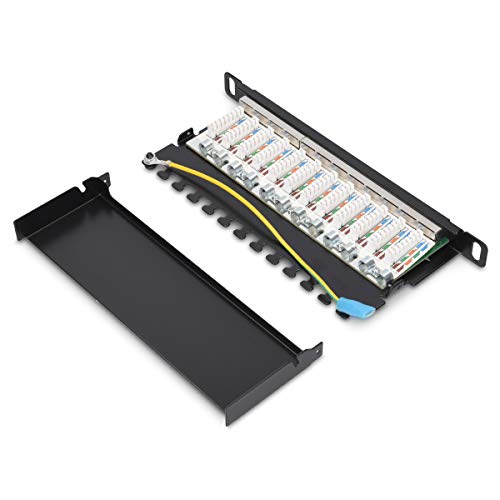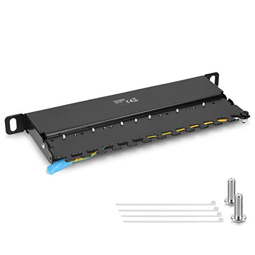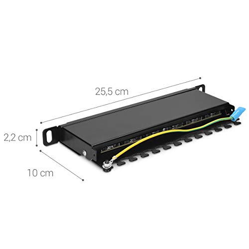 Specification: kwmobile 12-poorts 0,5U patchpaneel – Cat 6 distributiepaneel – 10″ patchpanel met aardingskabel – Afgeschermd – Inclusief montageset