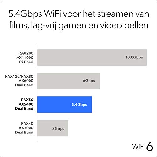 Specification: NETGEAR Nighthawk Wifi 6-router (RAX50) | AX5400 draadloze snelheid (tot 5,4 Gbps) | PS5-gamingrouter compatibel