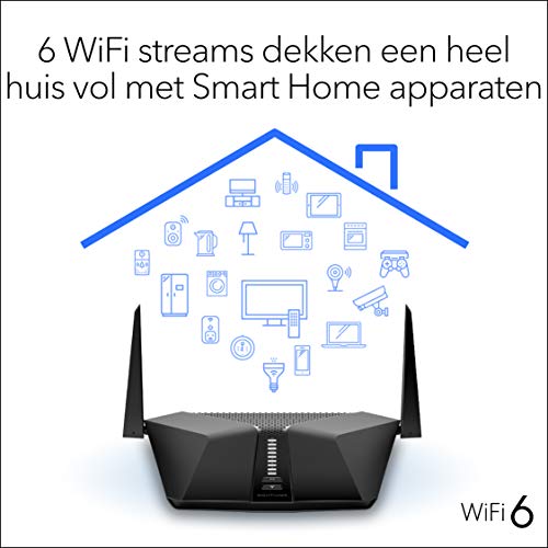 Geladen met geavanceerde technologie: ontworpen met een 1,8 GHz triple-core processor, OFDMA, MU-MIMO, Dynamic QoS, 1024-QAM, Smart Connect voor één WiFi-naam, Beamforming technologieën en Amazon Alexa en Google Assistant Voice Control. Ondersteunt WPA2/WPA3 draadloze beveiligingsprotocollen. Inclusief WiFi-toegang voor gasten, DoS, Firewall, VPN en meer